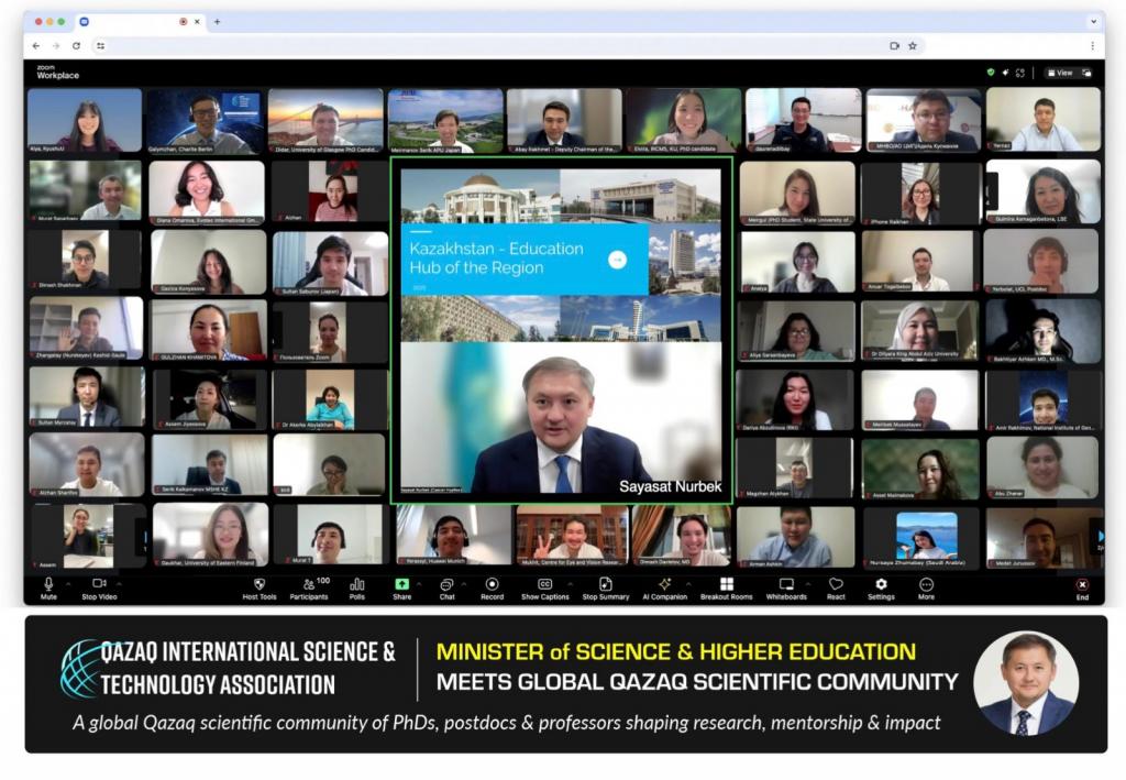 Состоялась масштабная онлайн-встреча Министра науки и высшего образования РК Саясата Нурбек с казахстанскими учеными, работающими в различных странах мира. Это событие стало историческим для казахстанской науки – впервые ученые, находящиеся за рубежом, объединились в таком формате. Инициатором мероприятия выступила Ассоциация Qazaq International Science and Technology Association (QIST). В встрече приняли участие более 100 ученых из более чем 20 стран, в том числе 21 профессор, 24 постдокторанта и 43 докторанта.