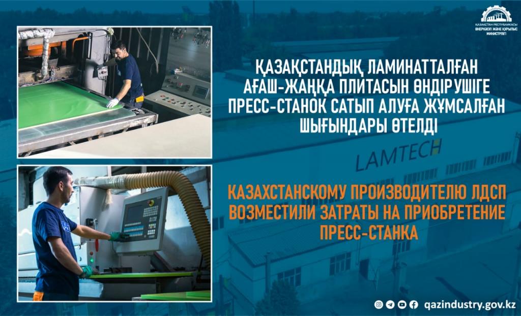 Компания Lam.Tech – казахстанский производитель ламинированных древесно-стружечных плит (ЛДСП) получил максимальную поддержку от QazIndustry в виде возмещения затрат, направленных на покупку высокотехнологичного оборудования.