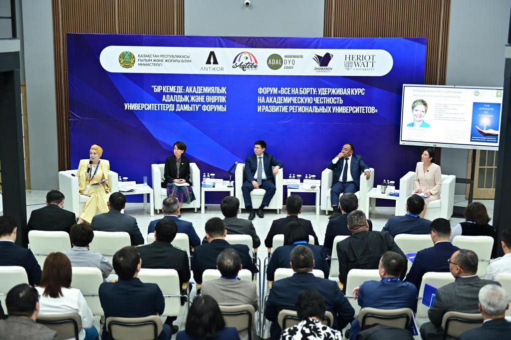 27 июня в Актюбинском региональном университете им. К.Жубанова прошел форум на тему «Все на борту: удерживая курс на академическую честность и развитие региональных университетов».
