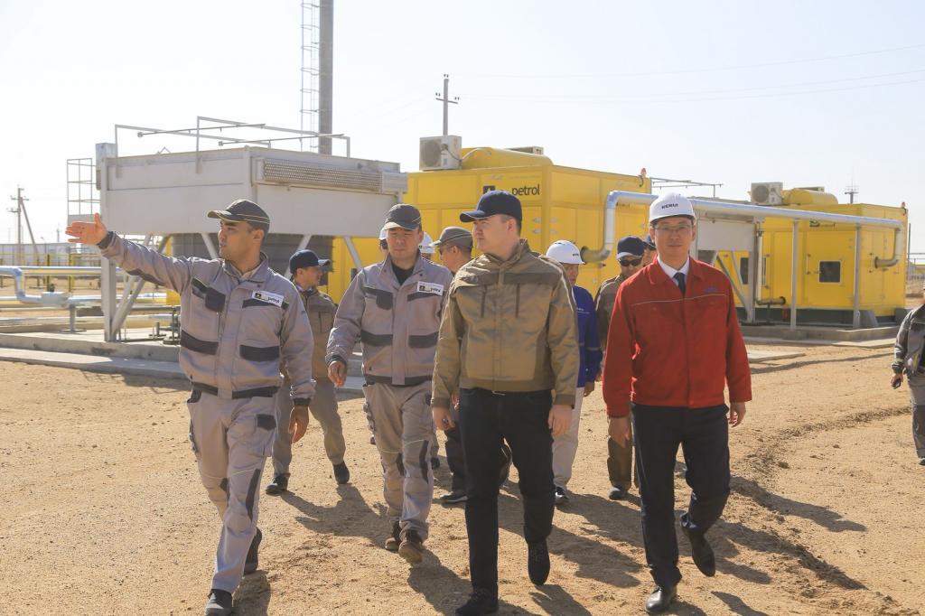 На месторождении Западный Тузколь вице-министр ознакомился с ходом строительства межпромыслового газопровода, соединяющего месторождения Западный Тузколь и Акшабулак. Реализация данного проекта позволит увеличить объемы утилизации попутного нефтяного газа и повысить эффективность разработки месторождения Тузколь.