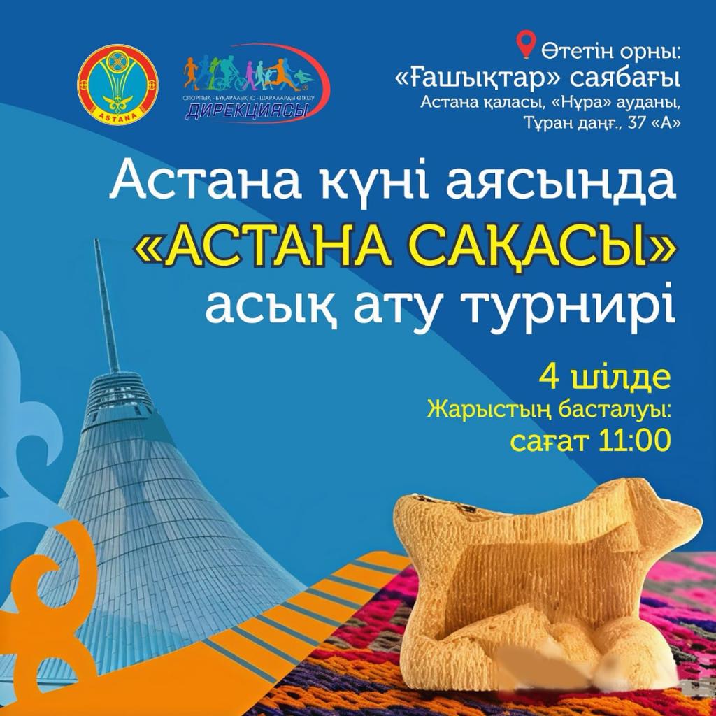 4 июля в парке «Ғашықтар» состоится городской турнир «Астана сақасы», организованный Управлением физической культуры и спорта столицы, передает официальный сайт акимата города.