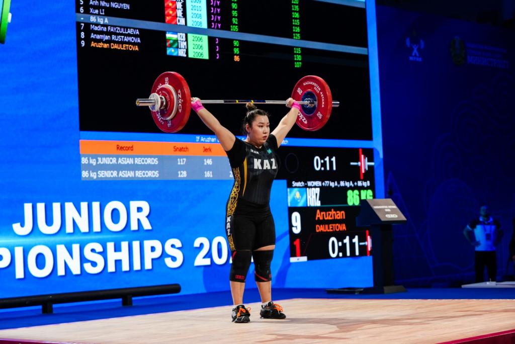 В Астане продолжается чемпионат Азии по тяжелой атлетике среди юниоров и юношей. Сегодня, 9 июля, на ЧА выступила член женской сборной Аружан Даулетова.