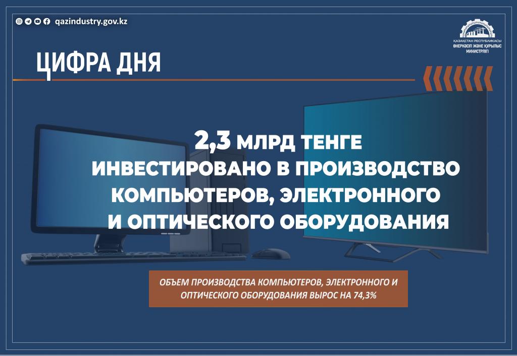 «Указанный прирост в производстве компьютеров, электронного и оптического оборудования обусловлен резким ростом инвестиций в данном секторе. За пять месяцев 2025 года инвестиции достигли без малого 2,3 млрд тенге. Прирост составил более 2 млрд тенге, увеличившись относительно аналогичного периода 2024 года более чем в девять раз», — говорится в сообщении.