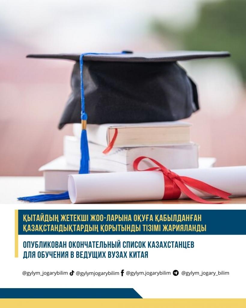 Опубликован окончательный список казахстанцев для обучения в ведущих вузах Китая