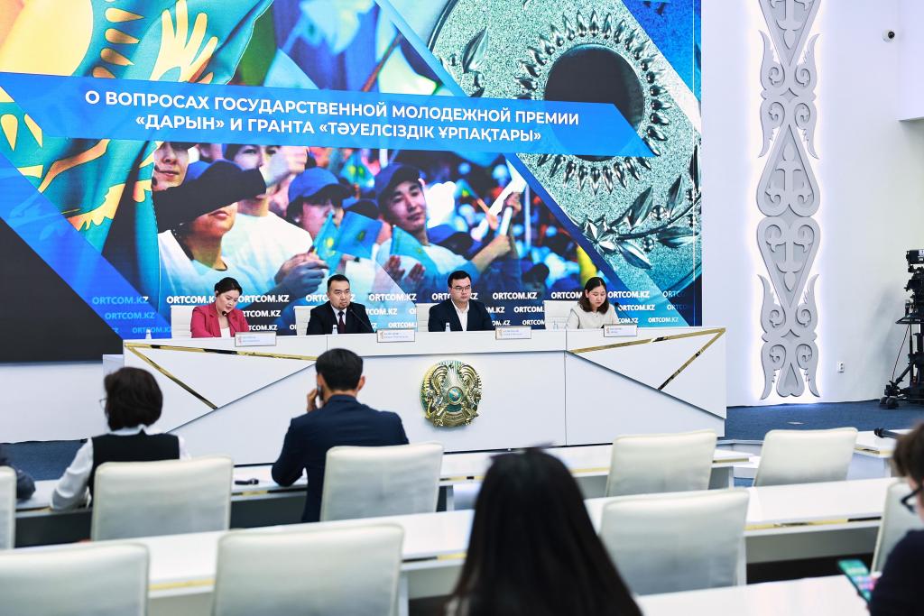 Сегодня на площадке Службы центральных коммуникаций при Президенте РК состоялся брифинг по вопросам присуждения государственной молодежной премии «Дарын» и гранта «Тәуелсіздік ұрпақтары». Спикерами выступили Председатель Комитета по делам молодежи и семьи Министерства культуры и информации РК Кайрат Камбаров, Председатель Республиканской молодежной организации «Ассамблея жастары», Лауреат государственной премии «Дарын» Тимур Джумурбаев, автор проекта «TALAPAI», грантообладатель «Тәуелсіздік ұрпақтары» 2023 года Айнура Пулатова.