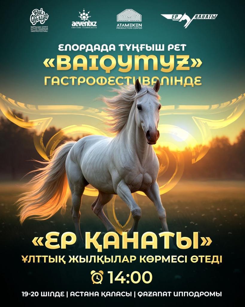 На столичном ипподроме «Қазанат» 19 и 20 июля впервые состоится крупное культурно-аграрное мероприятие, посвящённое национальному напитку казахов кумыcу, — гастрономический фестиваль «BaiQymyz». В рамках проекта проведут национальную выставку лошадей «Ер қанаты», передает официальный сайт городского акимата.