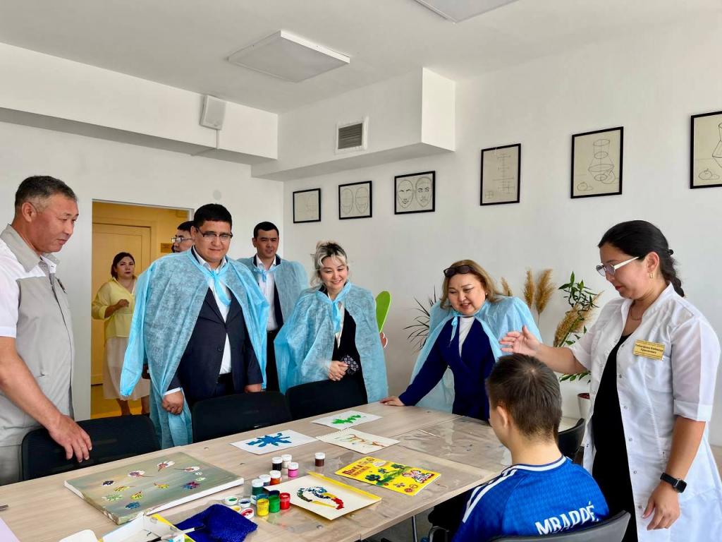 Рабочая программа началась с посещения социально-реабилитационного центра «Ақжайық», открытого в декабре 2024 года по поручению Главы государства. Центр рассчитан на 150 мест и оказывает услуги детям и взрослым с инвалидностью, включая лиц с нарушениями опорно-двигательного аппарата и психоневрологическими патологиями. Здесь внедрены современные подходы к реабилитации: используются бассейн, спортивный и физиотерапевтический залы, роботизированные тренажёры и мастерские трудотерапии. На сегодняшний день в центре получают услуги 133 человека.