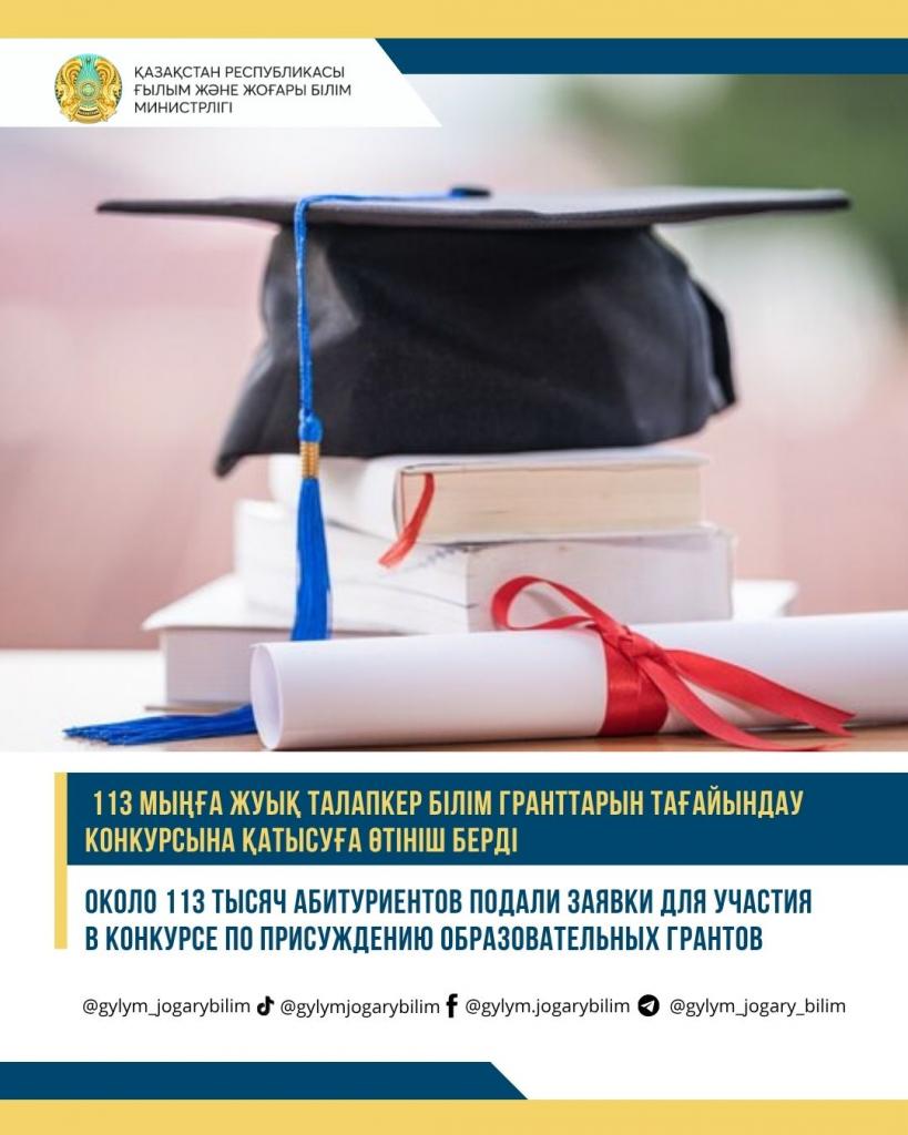 ОКОЛО 113 ТЫСЯЧ АБИТУРИЕНТОВ ПОДАЛИ ЗАЯВКИ ДЛЯ УЧАСТИЯ В КОНКУРСЕ ПО ПРИСУЖДЕНИЮ ОБРАЗОВАТЕЛЬНЫХ ГРАНТОВ