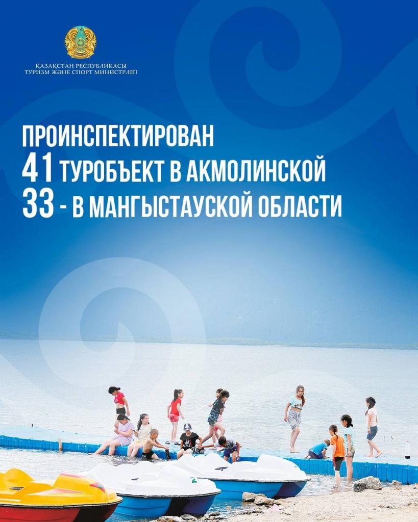 В этот же период проведена инспекционная поездка в Мангистаускую область. Проверены 33 базы отдыха и пляжа в Актау, Жанаозене, Каракиянском, Мунайлинском и Тупкараганском районах. Осматривалось санитарное состояние объектов, обеспечение безопасности отдыхающих, соблюдение норм в водоохранных полосах. По итогам анализа Министерством предложено включить развитие коммунальных пляжей и прибрежной инфраструктуры в Дорожную карту развития Мангистауской области, находящуюся в разработке.