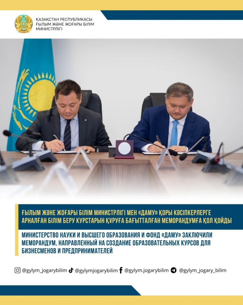 Министерство науки и высшего образования и Фонд «Даму» заключили меморандум, направленный на создание образовательных курсов для бизнесменов и предпринимателей