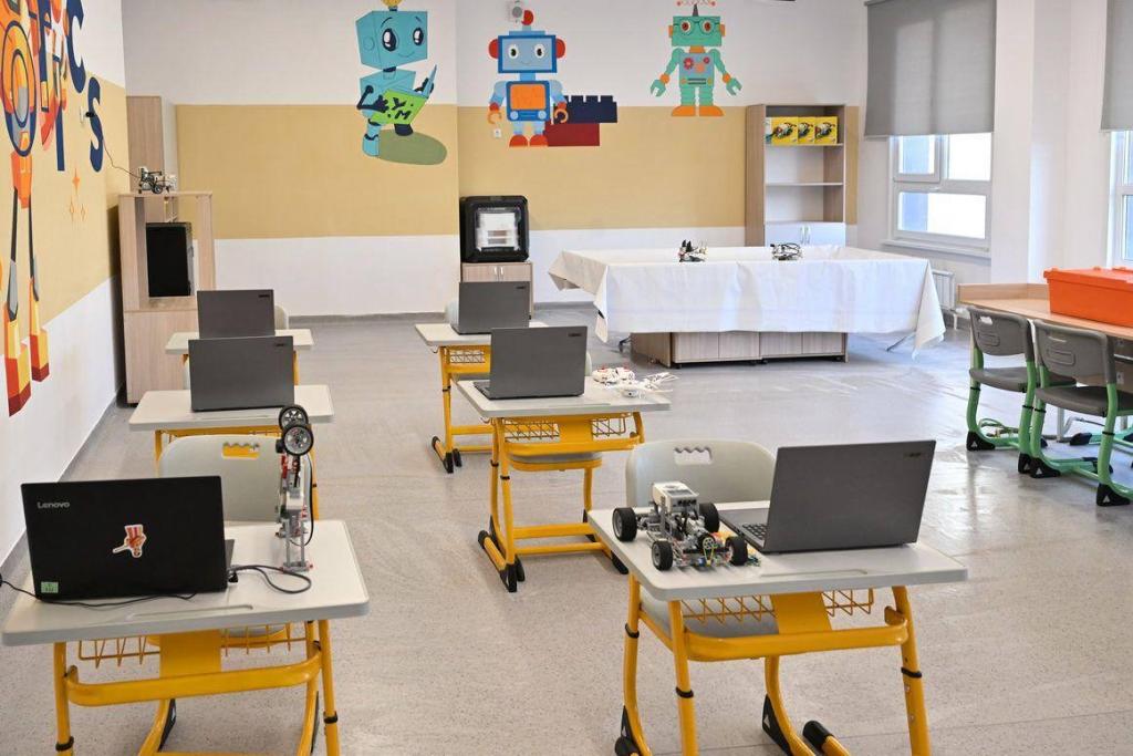 Школа оснащена STEM — лабораториями, кабинетами робототехники, хореографии, коворкинг — зонами, спортивными и актовыми залами. Учебный процесс организован с использованием цифровых технологий и элементов искусственного интеллекта.