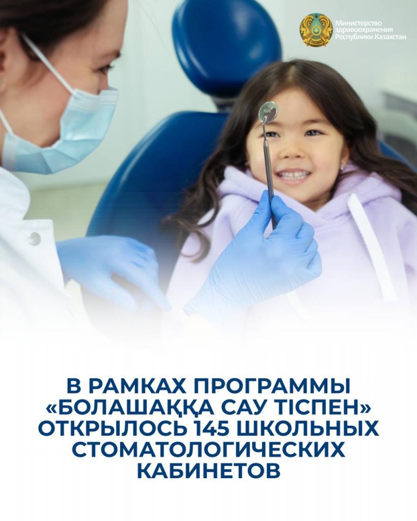 В рамках совместной программы Министерства здравоохранения и Министерства просвещения «Болашаққа сау тіспен» в школах с численностью свыше 1 тысячи учащихся с прошлого года по республике открыто 145 школьных стоматологических кабинетов.