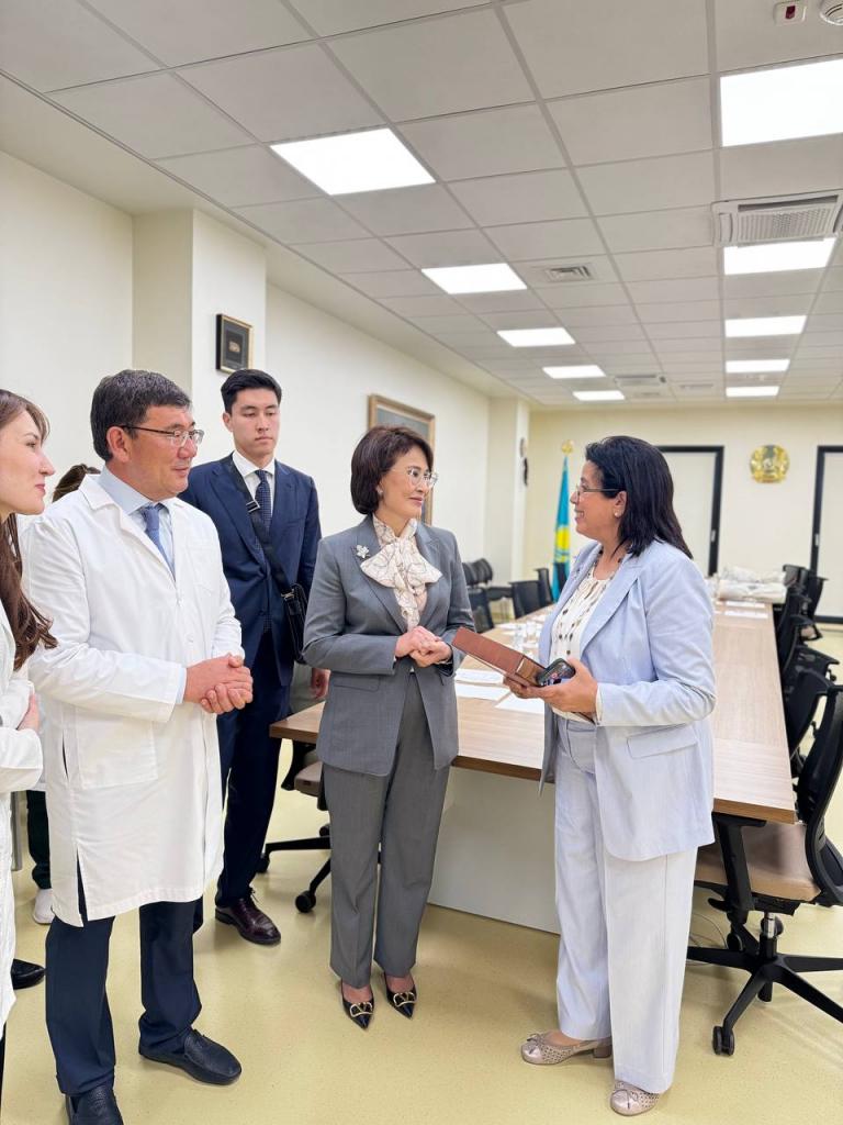 Встреча состоялась с участием министра здравоохранения Республики Казахстан Акмарал Альназаровой и руководства ННОЦ.