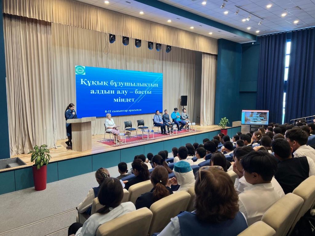 «Действия каждого из вас влияют не только на ваше будущее, но и на окружающих вас людей. Поэтому мы хотим рассказать о важности соблюдения закона, внимательности к своим действиям, чувства ответственности. Обращайтесь за помощью, если вас кто-то обидел, если вы стали свидетелями противоправных действий, не оставляйте жертву наедине с проблемой. Есть службы, куда вы можете обратиться за помощью. Это бесплатно. Это колл-центр 111. Центр психологической поддержки, куда можно обратиться с помощью QR-кодов, размещенных в школах. Также поддержку могут оказать школьные психологи и педагоги. Главное, чтобы взрослые всегда были готовы вам помочь», — сказала директор школы Гульназ Жарылкап.