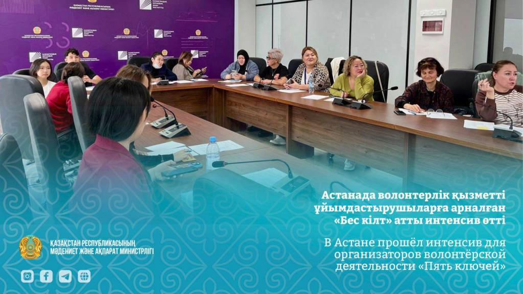 11 сентября 2025 года в Астане состоялся обучающий интенсив «Пять ключей» для организаторов волонтёрской деятельности. Мероприятие проведено в рамках Плана мероприятий по развитию казахстанско-российского гуманитарного сотрудничества на 2025 год и стало площадкой для профессионального обмена и расширения партнёрских связей между представителями волонтёрских организаций двух стран.
