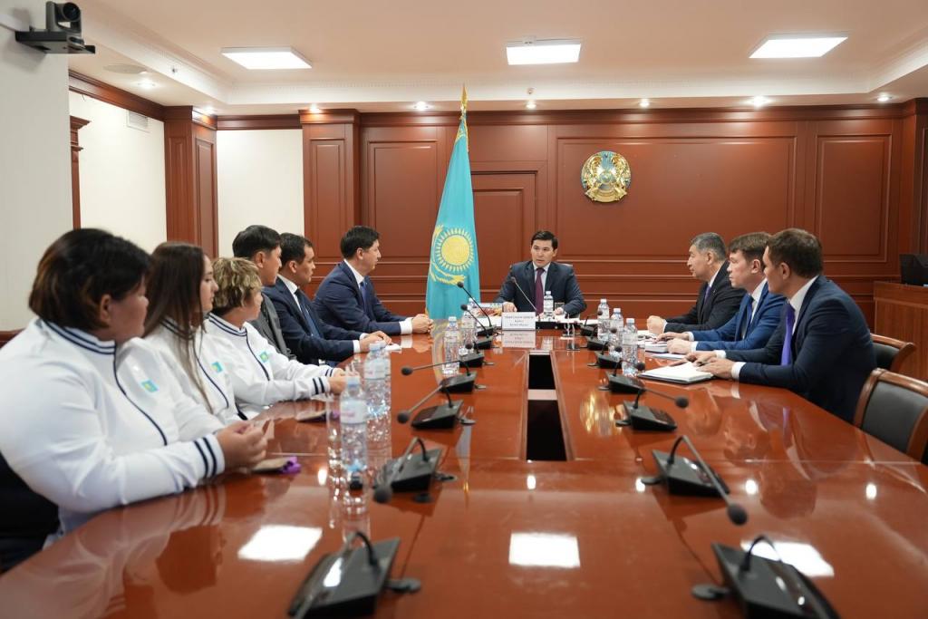 Министр туризма и спорта Ербол Мырзабосынов встретился с национальной женской сборной Казахстана по стрельбе из лука, завоевавшей историческую медаль на чемпионате мира в Кванджу (Южная Корея). Во встрече приняли участие спортсменки, тренеры и специалисты национальной команды.