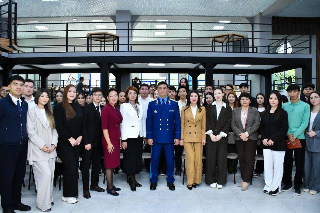 Важным событием встречи стало открытие уголка «Будущего прокурора» в библиотеке технического факультета. Здесь студенты могут воспользоваться учебными пособиями и трудами ведущих ученых, посвященными истории и развитию правоохранительной системы Казахстана. В дар университету Генеральная прокуратура передала 200 учебных книг, пополнив фонд библиотеки ценными юридическими изданиями, которые станут надежной основой для подготовки студентов юридического факультета.