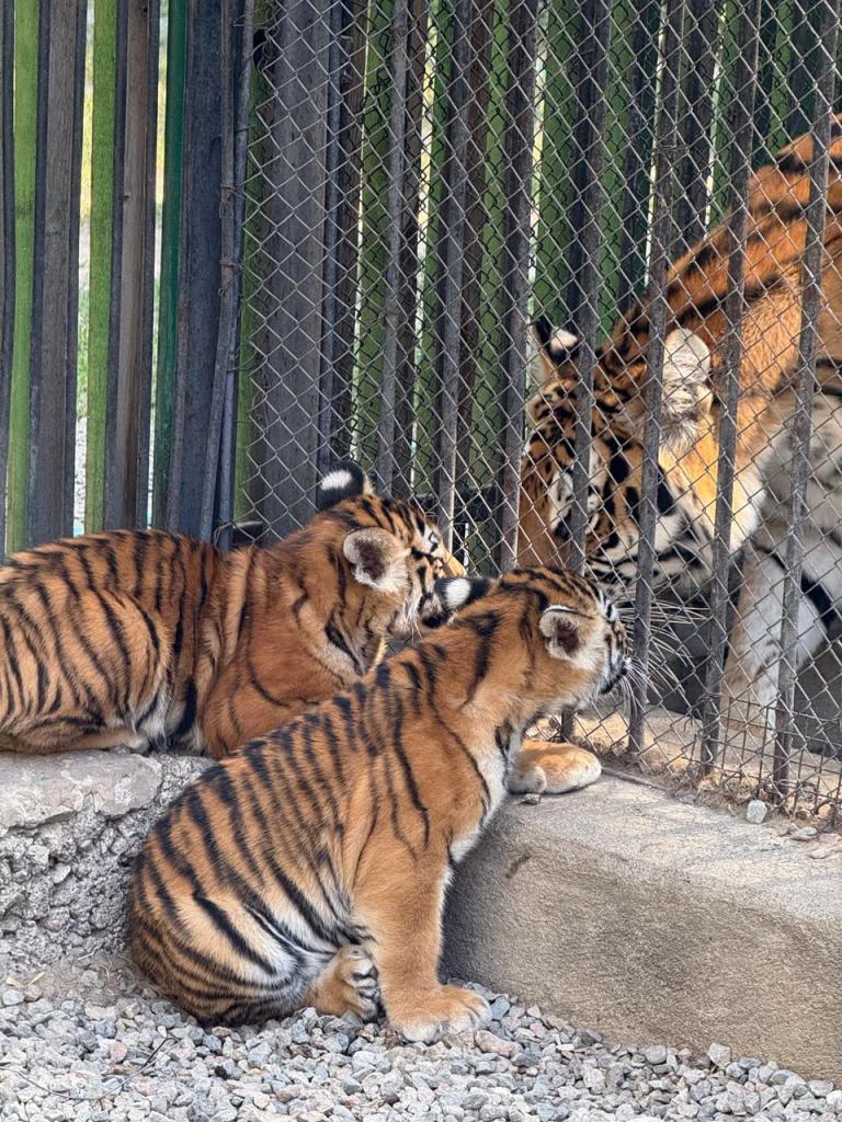 Тигрята появились на свет 14 июня и первые месяцы провели в специальной «тихой зоне» — вольере с минимальным количеством шумов и визуальных стимулов. Такой режим необходим для снижения стресса у самки и правильного развития малышей.