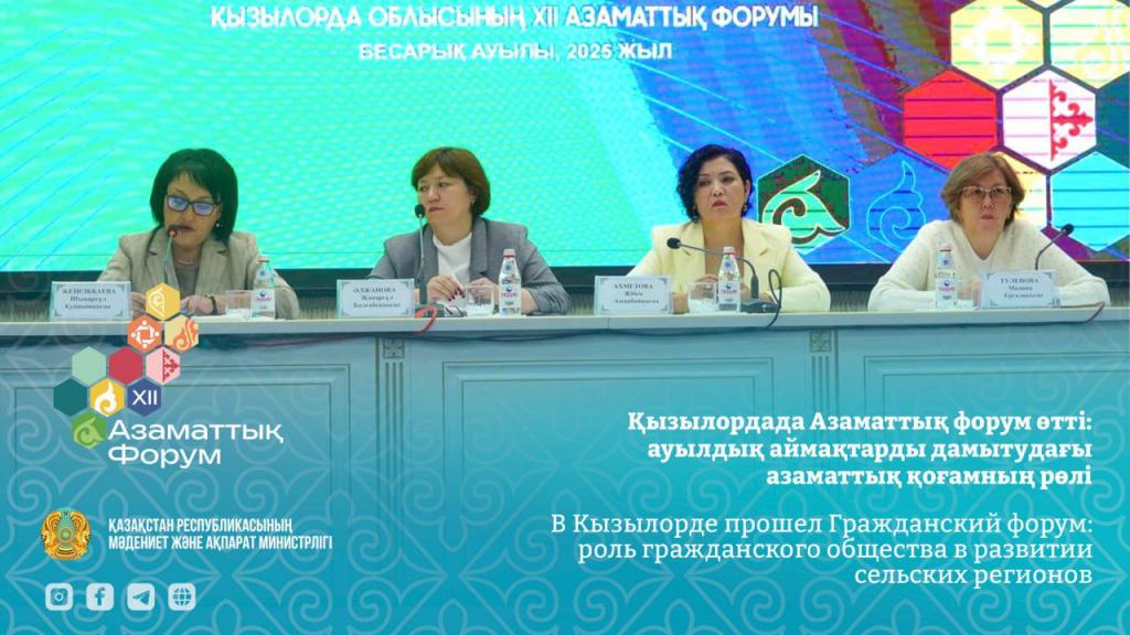 26 сентября 2025 года в Кызылординской области прошел Региональный гражданский форум на тему: «Роль гражданского общества в развитии сельских регионов».