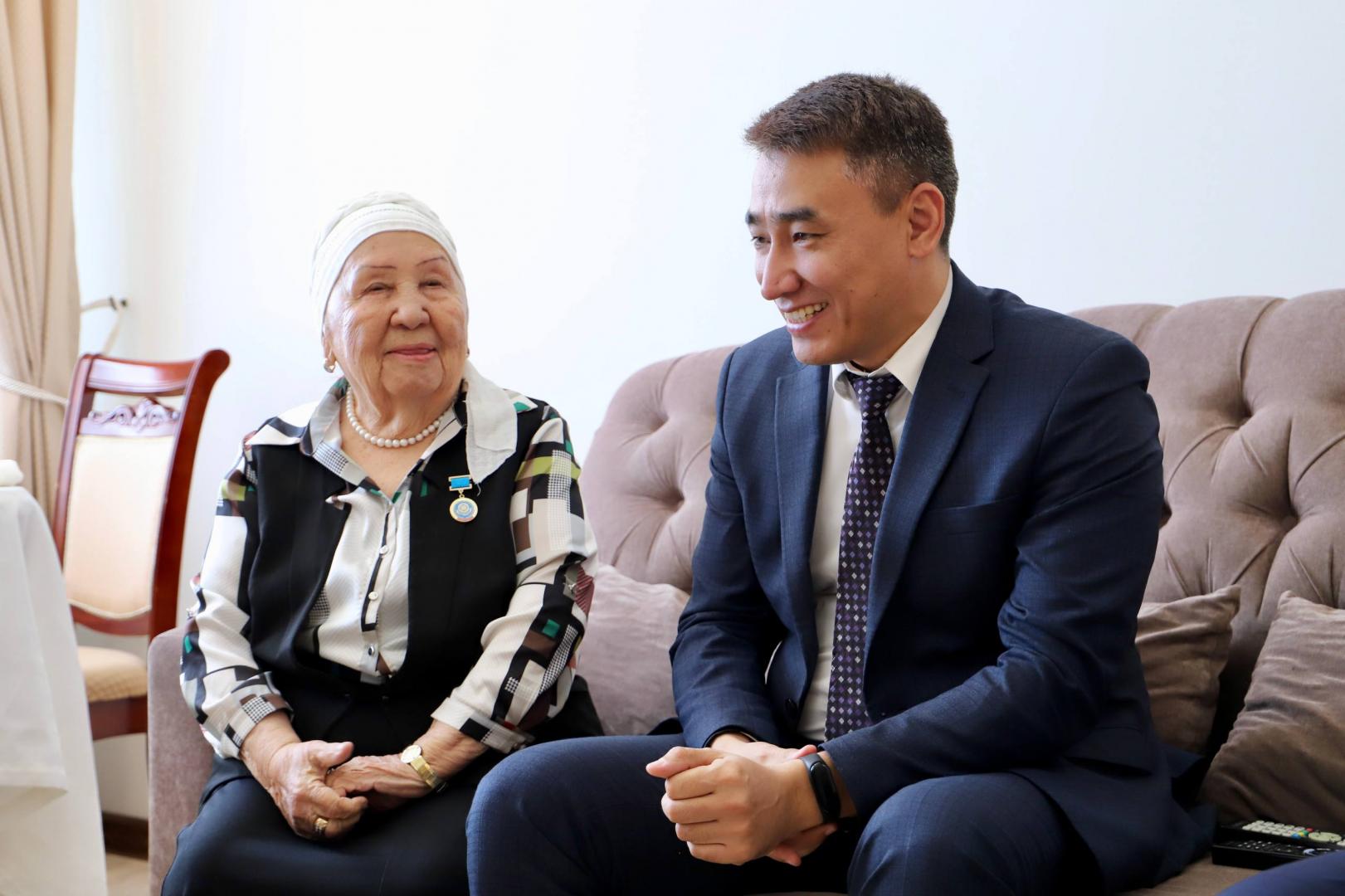 Олжас Анафин посетил на дому Героя Социалистического Труда Валентина Петровича Щербакова и ветерана труда, труженика тыла Розу Имангалиевну Асылбекову.