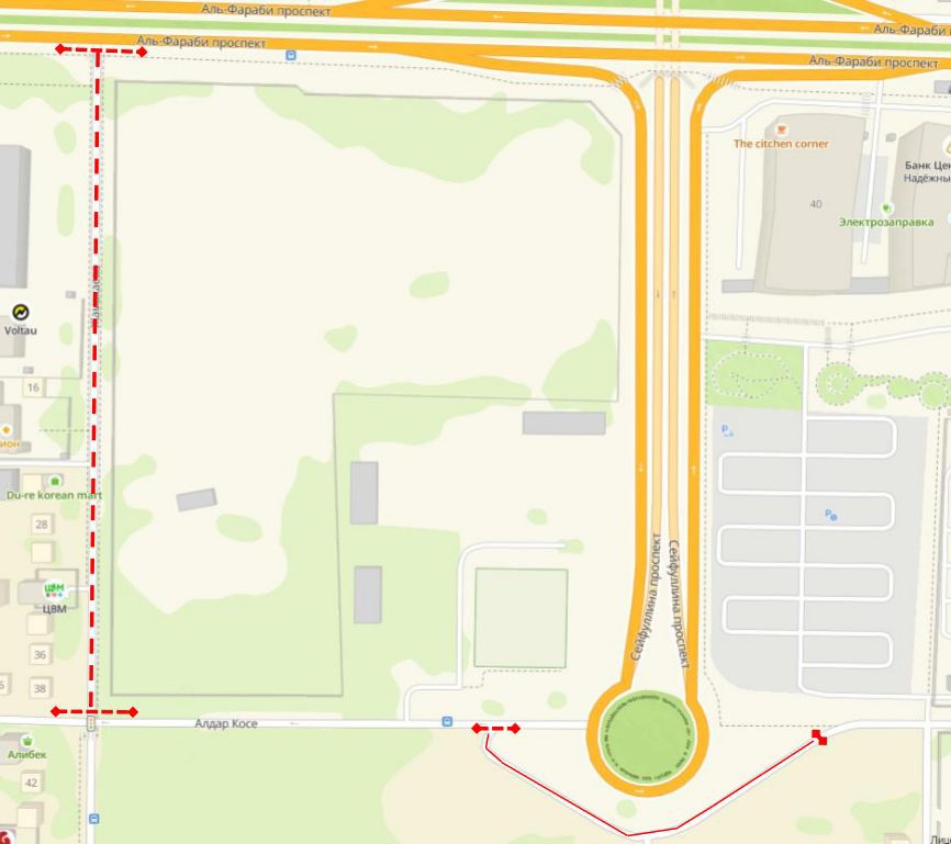 Проект предусматривает строительство магистральной водопроводной сети для жителей Медеуского района. Объезд участка будет организован: с западной стороны — через пр. Сейфуллина, и с южной стороны — через ул. Алдар Косе.