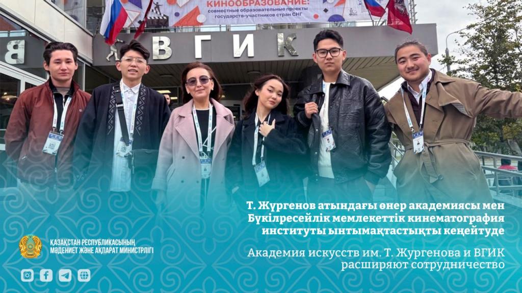 Казахская национальная академия искусств имени Темирбека Жургенова расширяет сотрудничество с Всероссийским государственным институтом кинематографии имени С.А. Герасимова (ВГИК). Соответствующий документ накануне был подписан ректорами двух вузов.