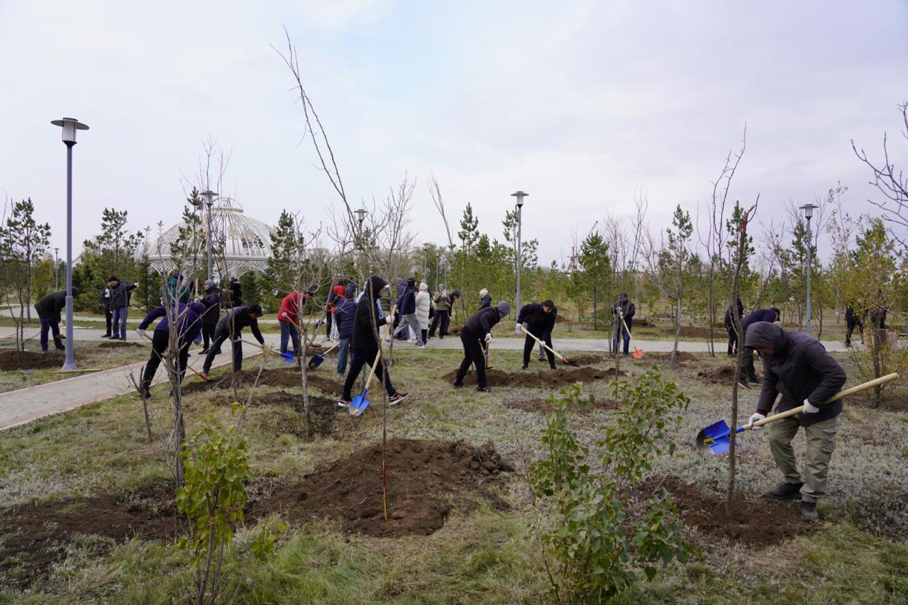В посадке деревьев приняли участие сотрудники акимата столицы и других государственных органов. Всего в парке «Коктал» высадили более 300 саженцев яблони, березы и др.