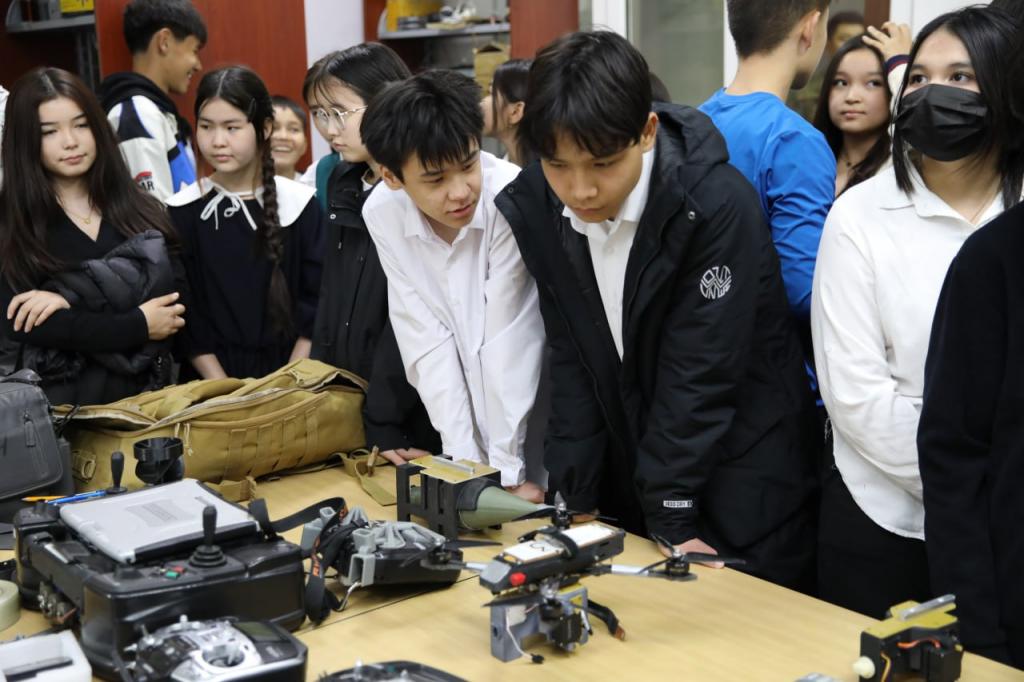 Школьникам на практике показали полет разведывательного дрона. О его технических характеристиках и возможностях дрона им рассказал начальник исследовательской службы технологического парка полковник Жаркын Кабдолда. Беспилотник использовался на учении «Айбалта» с целью разведки и отражения атак бронетехники и пехоты. Дальность управления дроном в зависимости от модификации от 3-х до 10 км, при этом он развивает скорость до 200 км/ч.