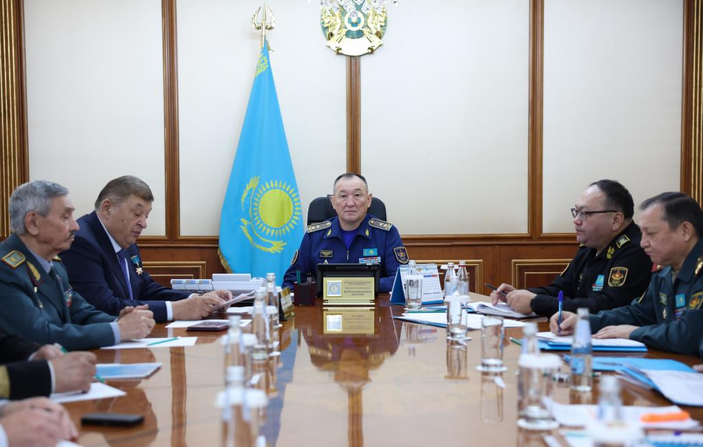 В Министерстве обороны состоялась встреча главы оборонного ведомства генерал-лейтенанта авиации Даурена Косанова с членами Центрального Совета РОО «Ветераны Вооруженных Сил» во главе с Халық қаһарманы генералом армии Мухтаром Алтынбаевым.