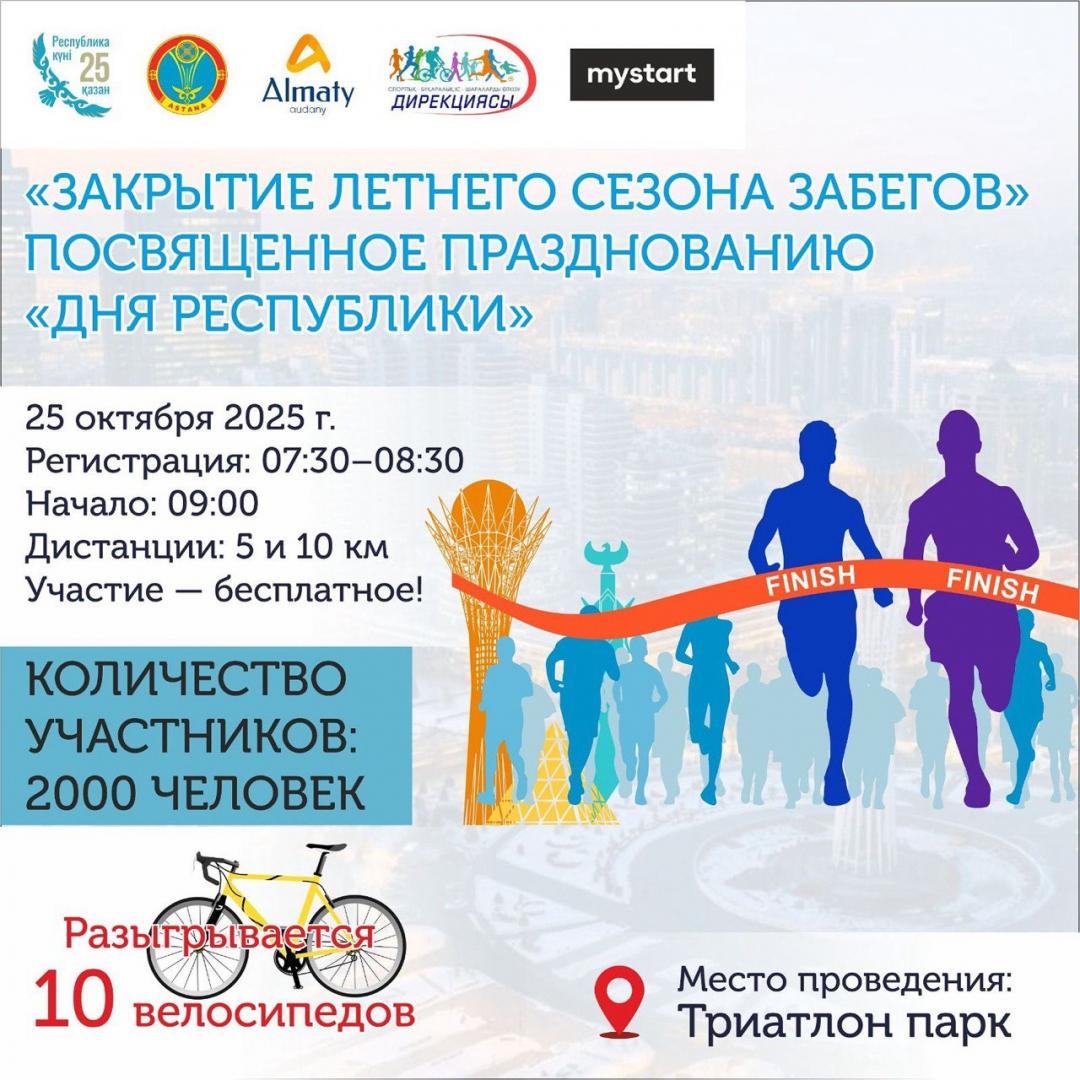 В День Республики, 25 октября в Астане состоится торжественное закрытие летнего сезона забегов, передает официальный сайт акимата столицы.