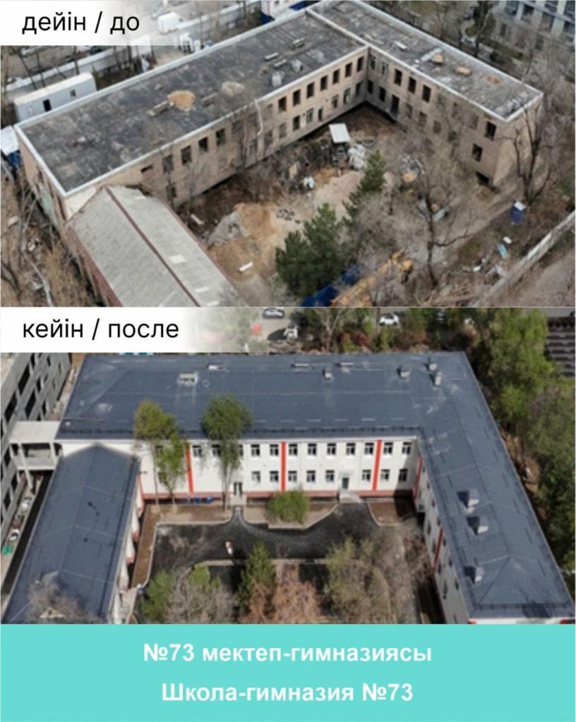 В Бостандыкском районе выполнены работы по сейсмоусилению и капитальному ремонту Коррекционного ясли-сада №137 для детей с нарушениями слуха и ясли-сада №87. Проведена также реконструкция здания под детский сад на 240 мест. Обновленные учреждения оснащены современными групповыми помещениями, залами для музыкальных и физкультурных занятий, медицинскими и бытовыми блоками. Все здания полностью адаптированы для комфортного и безопасного пребывания детей.