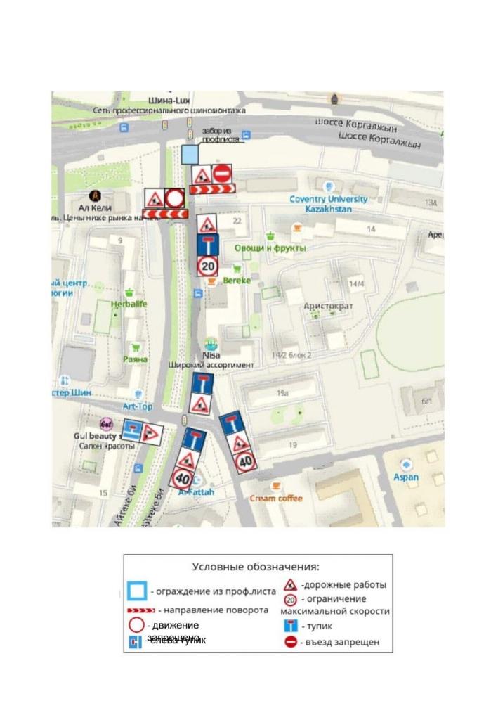 В связи с этим в период с 30 октября по 15 ноября текущего года будет частично перекрыто движение по улице Айтеке би по направлению движения в сторону шоссе Коргалжын.