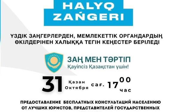 Официальный сайт акимата Астаны сообщает о проведении социальной акции «Народный юрист» 31 октября в столичном Дворце школьников имени аль-Фараби.