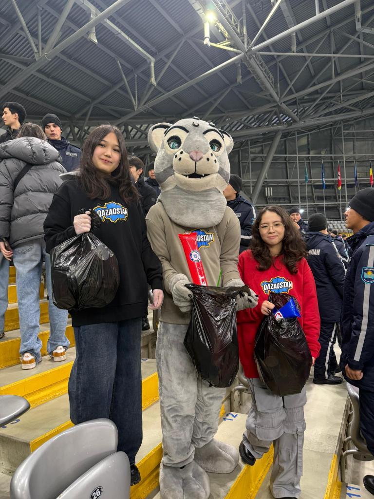 Инициативу поддержал и любимец астанчан — экоперсонаж Тазабек. Его присутствие вызвало искреннюю радость у фанатов и превратило уборку в дружеское и по-настоящему тёплое завершение вечера.