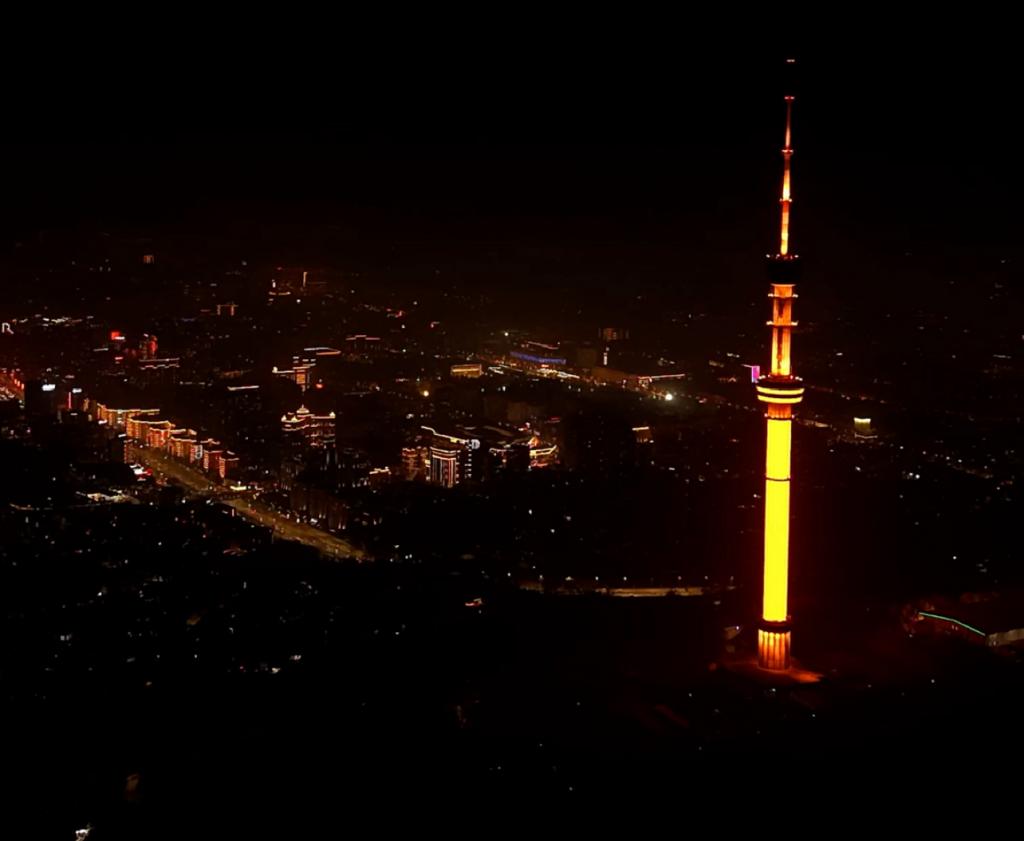 Телебашня Коктобе и другие знаковые объекты Алматы окрасились в оранжевый цвет