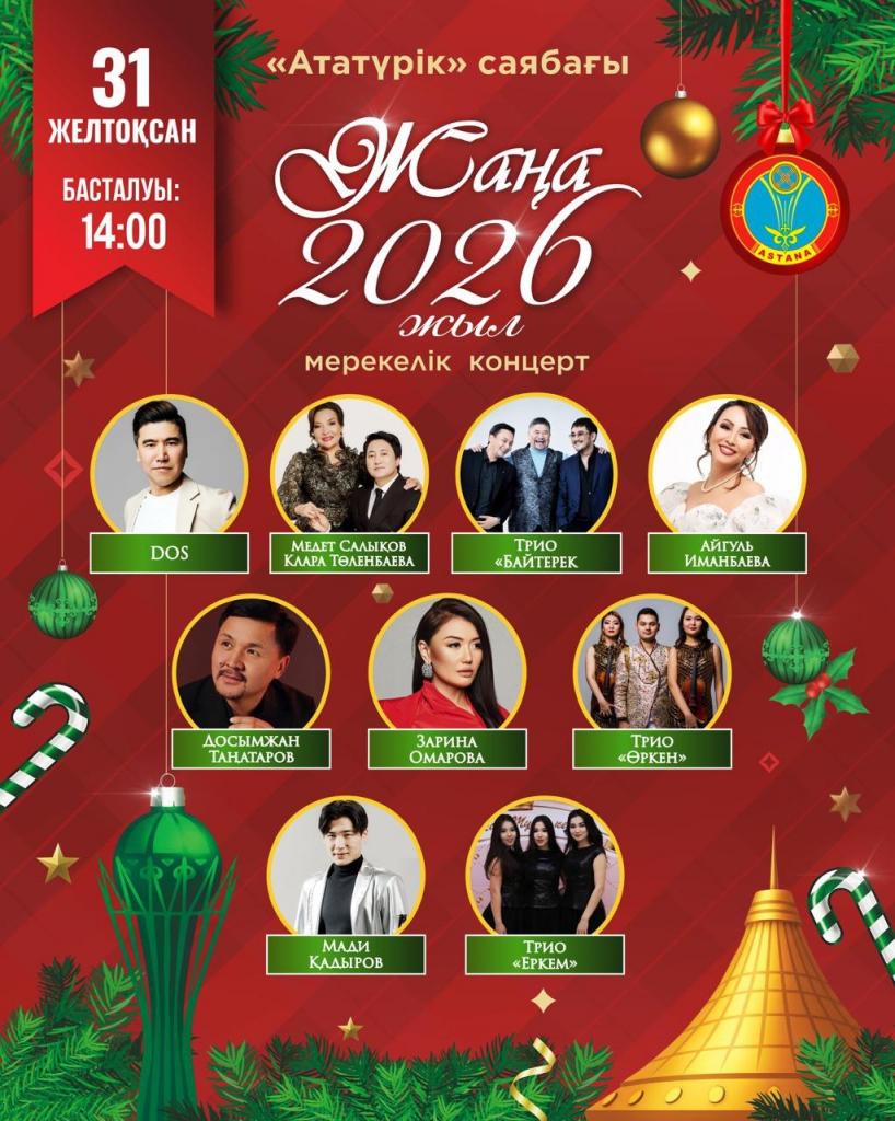 31 декабря днем в десяти локациях шести районов Астаны состоятся праздничные новогодние концерты с участием звезд казахстанской эстрады и творческих коллективов, сообщает Optimism.kz.