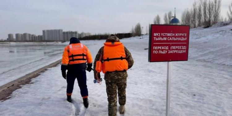 Департамент по чрезвычайным ситуациям Астаны предупреждает, что в связи с резким повышением температуры воздуха толщина ледяного покрова на реке Есиль уменьшилась.