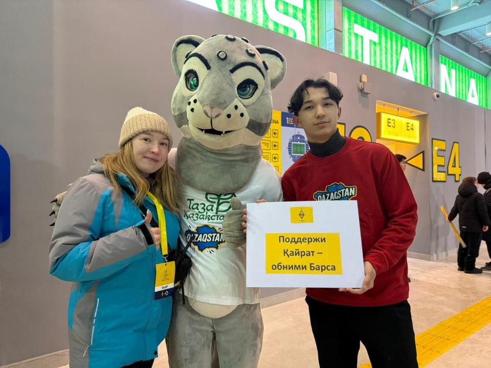 Во время футбольного матча между командами «Кайрат» и «Брюгге», который прошёл 20 января на стадионе «Астана Арена», болельщиков ждал неожиданный гость — среди трибун появился Тазабек, сообщает официальный сайт столичного акимата.
