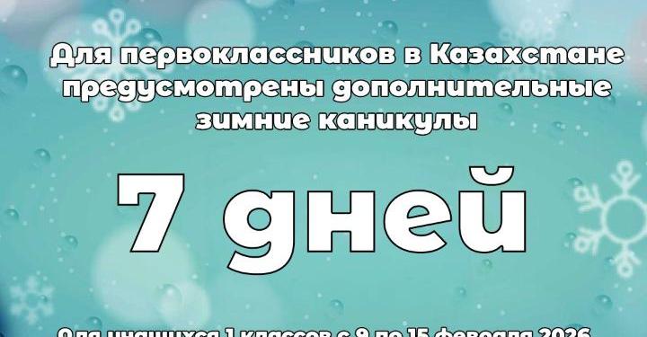 На официальном сайте Министерства просвещения РК размещена информация о дополнительных зимних каникулах для первоклассников.
