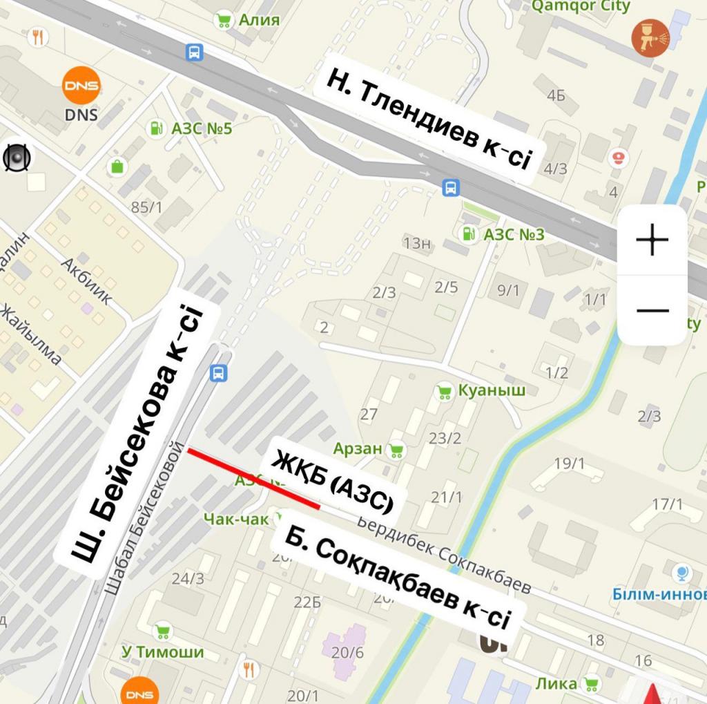 Работы осуществляются по улице Б. Сокпакбаева на участке от улицы Ш. Бейсековой до АЗС «Аурика».