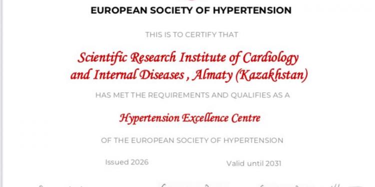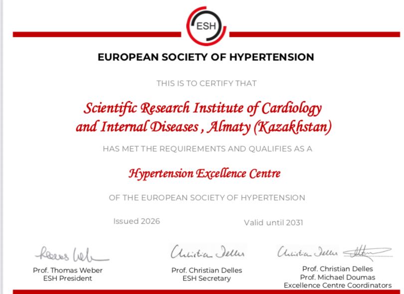 Присвоение институту данного статуса стало возможным благодаря тесной коллаборации ESH с Обществом специалистов по артериальной гипертонии и кардиоваскулярной профилактике под руководством президента Общества Гульнары Джунусбековой и вице-президента Мейрамгуль Тундыбаевой.