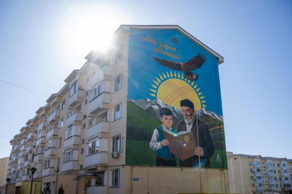 По словам автора мурала Ернура Бакбергена, его работа направлена на передачу значимых ценностей в обществе через язык современного искусства: