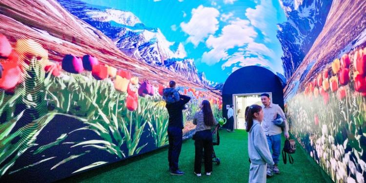 Празднование AI-Наурыза в Международном выставочном центре «EXPO» начинается сразу с входа — гостей встречает 12-метровый иммерсивный LED-туннель. Динамичные видеопотоки создают эффект полного погружения и вовлекают в атмосферу праздника с первых секунд, сообщает столичный сайт акимата.
