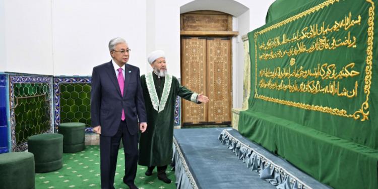 Визит Президента в регион начался с посещения одной из величайших духовных и историко-культурных святынь тюркского мира – мавзолея Ходжи Ахмеда Яссауи, внесенного в список Всемирного наследия ЮНЕСКО.