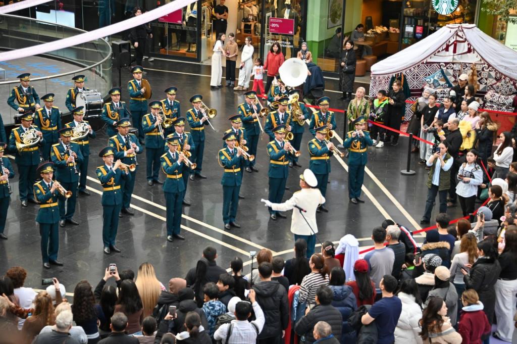 В преддверии Наурыз мейрамы военнослужащие Центрального военного оркестра Национального военно-патриотического центра устроили яркое музыкальное выступление в торгово-развлекательном центре «Хан Шатыр».