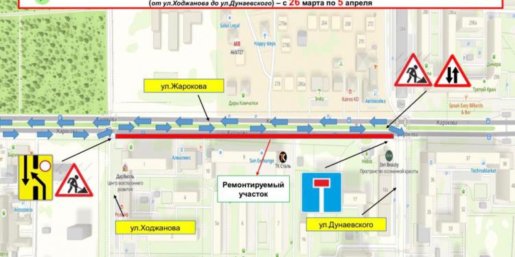 Дорожные работы планируется провести с 26 марта по 5 апреля 2026 года.