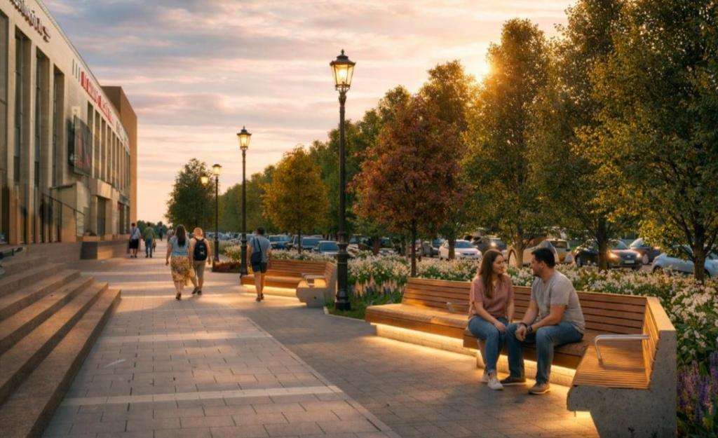 Демонтированная брусчатка при этом будет повторно использована — в том числе при обустройстве карманных скверов вдоль проспекта, на участке за отелем IBIS в рамках благоустройства сквера и других участках города.