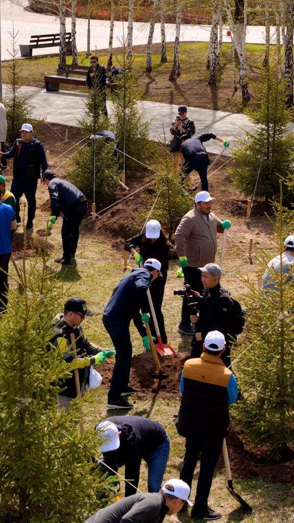 С самого утра на территории парка собрались порядка 300 человек. Участники акции — горожане, волонтеры, пенсионеры центра активного долголетия, депутаты столичного маслихата и семьи с детьми — распределялись по участкам и приступали к посадке деревьев.