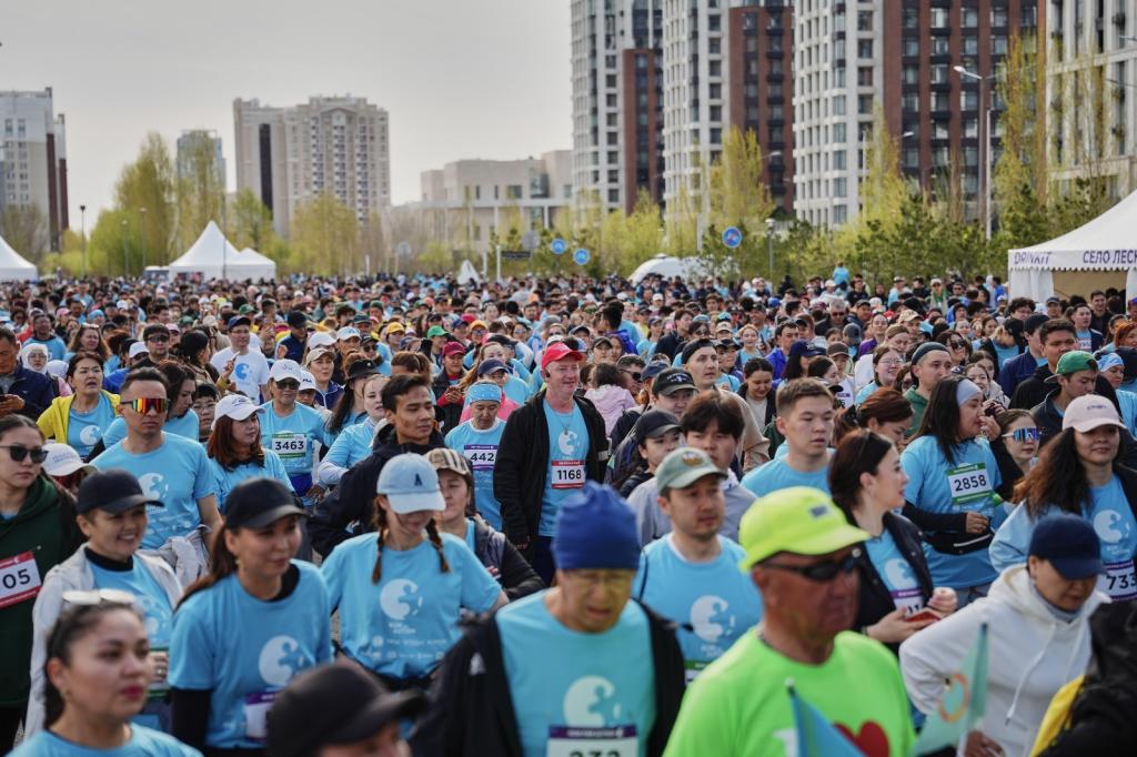 В забеге приняли участие более 100 человек с особенностями развития, включая людей с аутизмом, синдромом Дауна, ДЦП, нарушениями слуха и опорно-двигательного аппарата. В онлайн-забеге участвовали 140 человек из 30 городов Казахстана, а также из Великобритании и России.