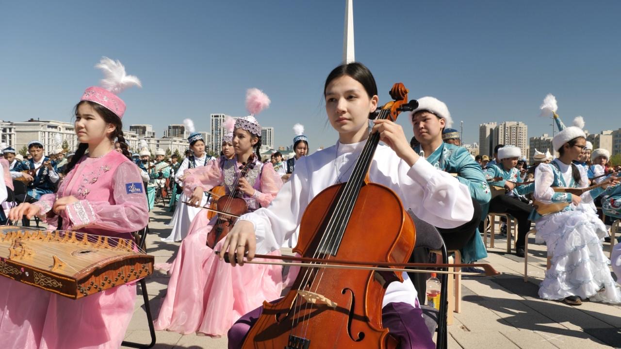 «В акции приняли участие около 2000 учащихся в возрасте от 10 до 16 лет – это воспитанники музыкальных, художественных и общеобразовательных школ столицы. Они одновременное исполнили кюй «Алтын ұя» композитора Қаршыға Ахмедиярова. Юные музыканты играли на различных инструментах — домбре, кобызе, кылкобызе, жетыгене, сазсырнае, а также на флейте и скрипке. Несмотря на разнообразие звучания, все инструменты слились в единое музыкальное произведение, символизируя гармонию и сплочённость народа», — сказала пресс-секретарь Управления образования города Астаны Аяжан Амантайқызы.